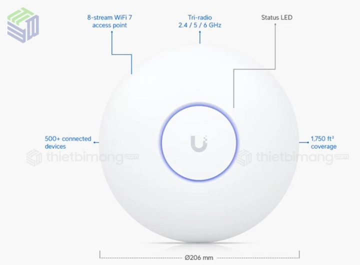 Với khả năng này, bộ phát WiFi 7 U7-Pro-Max là lựa chọn hoàn hảo cho các dự án cần xử lý lưu lượng lớn, đảm bảo mỗi người dùng đều có kết nối tốc độ cao và ổn định, ngay cả trong thời gian cao điểm.