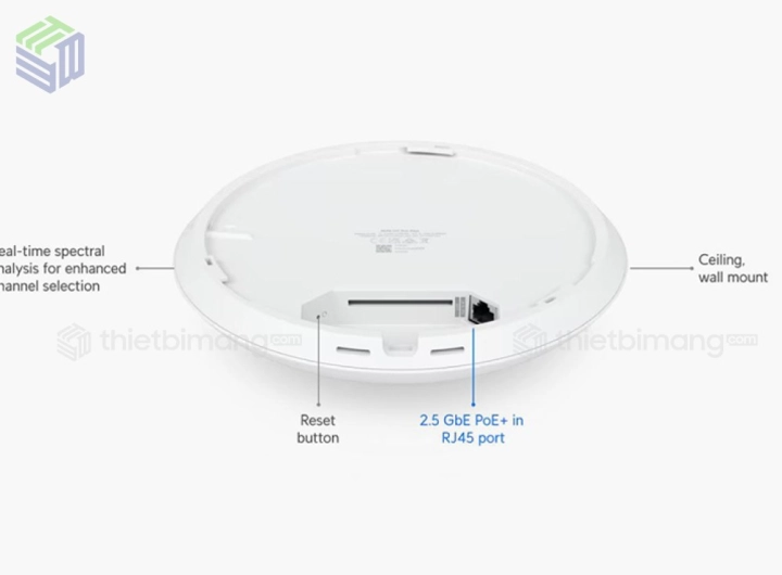 • Cổng Uplink 2.5 GbE (2.5 Gigabit Ethernet): U7-Pro-Max được trang bị (1) Cổng RJ45 1/2.5 GbE, đảm bảo rằng kết nối có dây (uplink) không giới hạn tổng thông lượng không dây vượt trội của Wi-Fi 7 (hơn 15 Gbps lý thuyết). Việc này là bắt buộc để duy trì hiệu suất cao nhất.