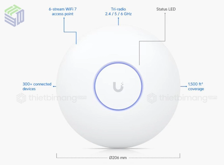 UniFi U7-Pro cung cấp vùng phủ sóng lên tới 140 m² (1,500 ft²) và khả năng hỗ trợ hơn 300 thiết bị khách đồng thời, làm cho nó trở thành giải pháp lý tưởng cho các văn phòng quy mô lớn, khu vực công cộng, trung tâm thương mại.